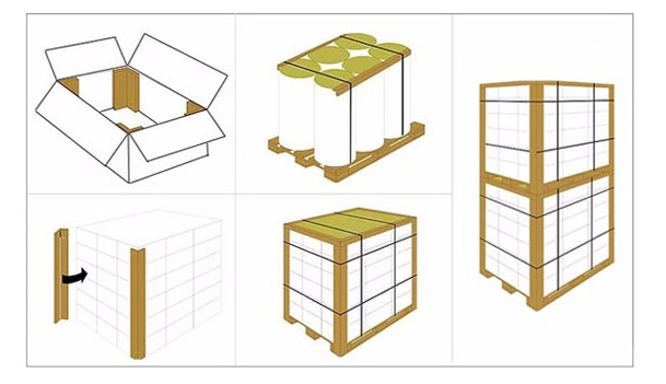 – Improve stacking strength by reinforcing boxes internally with edge board protectors